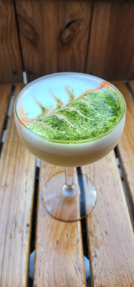 agua magica mezcal, yuzu, lime, pistachio-mint syrup, egg white & matcha