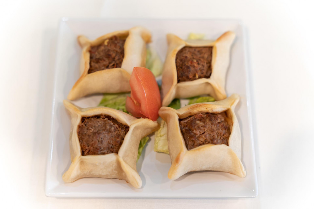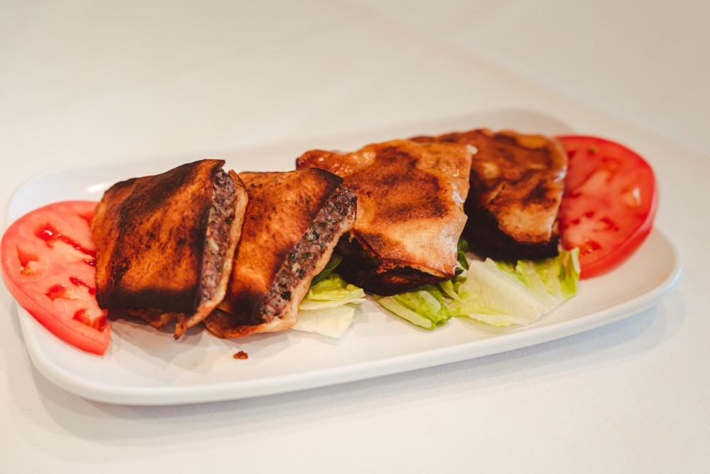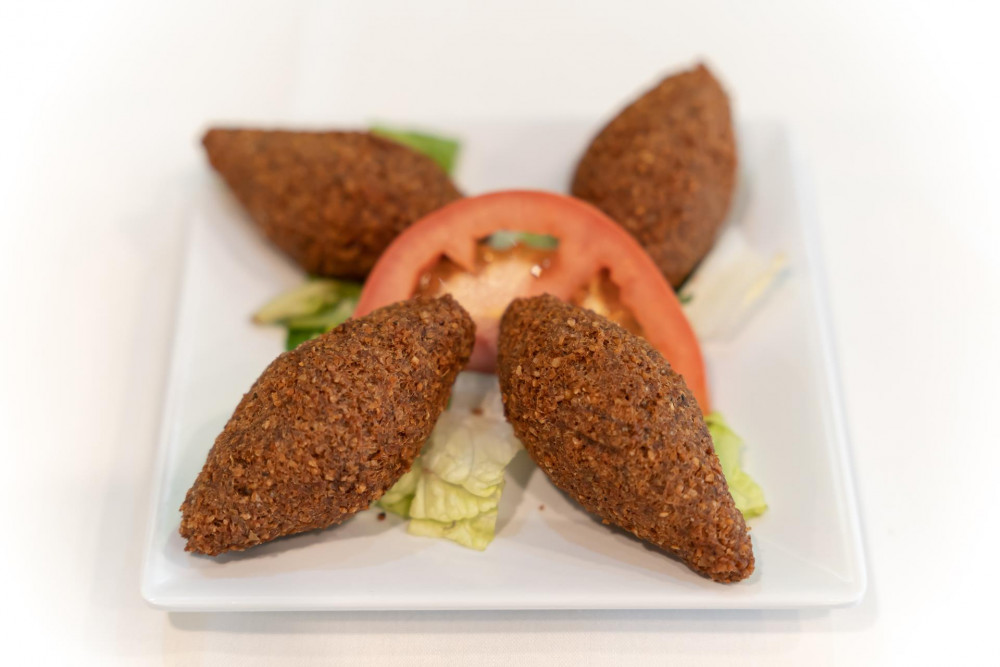 ovals of ground beef & cracked wheat stuffed with lamb & onions