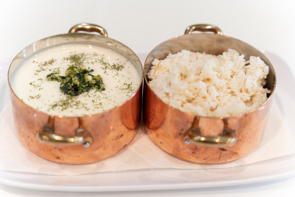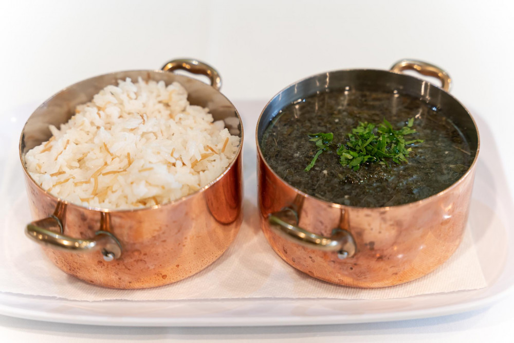 chopped mallow leaves cooked in cilantro, garlic & chicken
