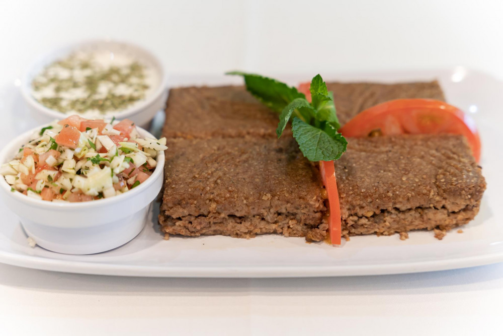 baked ground beef & cracked wheat stuffed with minced meat & pignoli