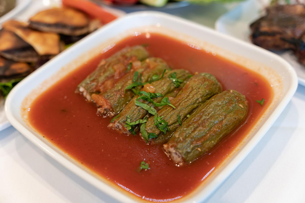 gray squash, grape leaves or cabbage stuffed with minced lamb & rice