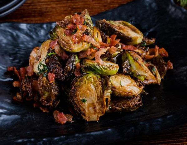 Grilled brussels sprout w. bacon, parsley & butter