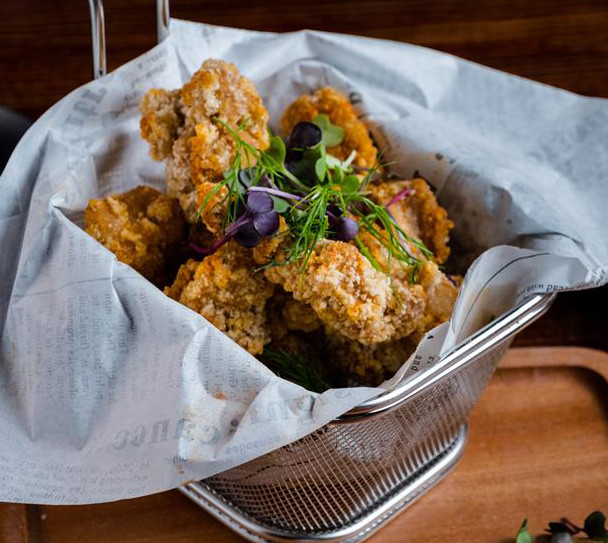 Fresh blue point oysters with bourbon herb butter sauce