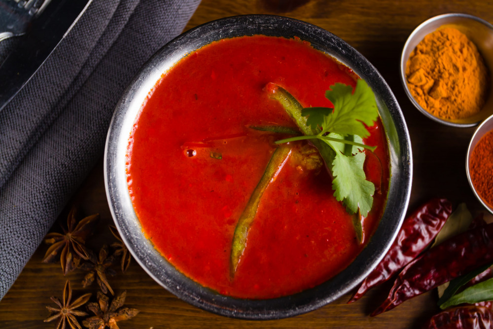 A British Indian Curry with Habanero and Green Chilies and Habanero. Very Spicy.