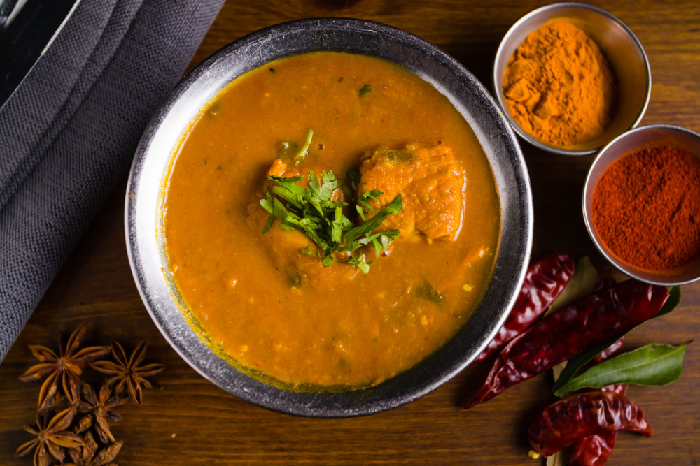 A Goan Preparation with Vinegar, Dry Red Chilies and Ginger. Very Spicy.