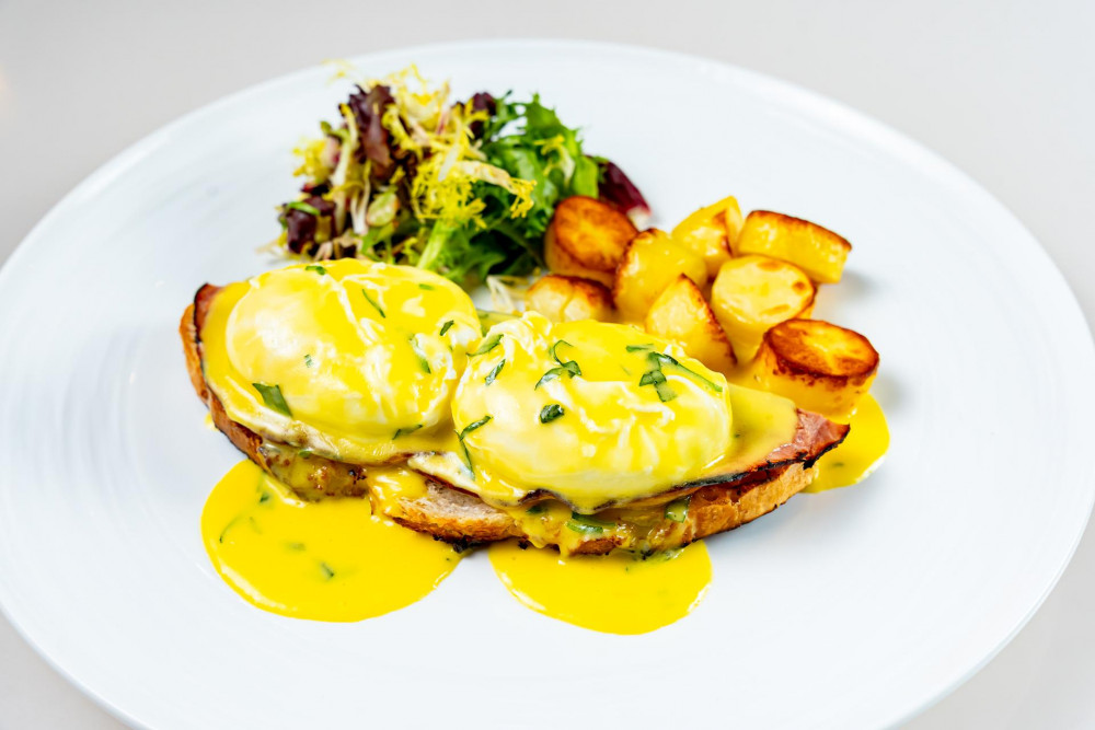 Mesclun radicchio, roasted fingerling potato, grilled sourdough, poached eggs, Hollandaise sauce