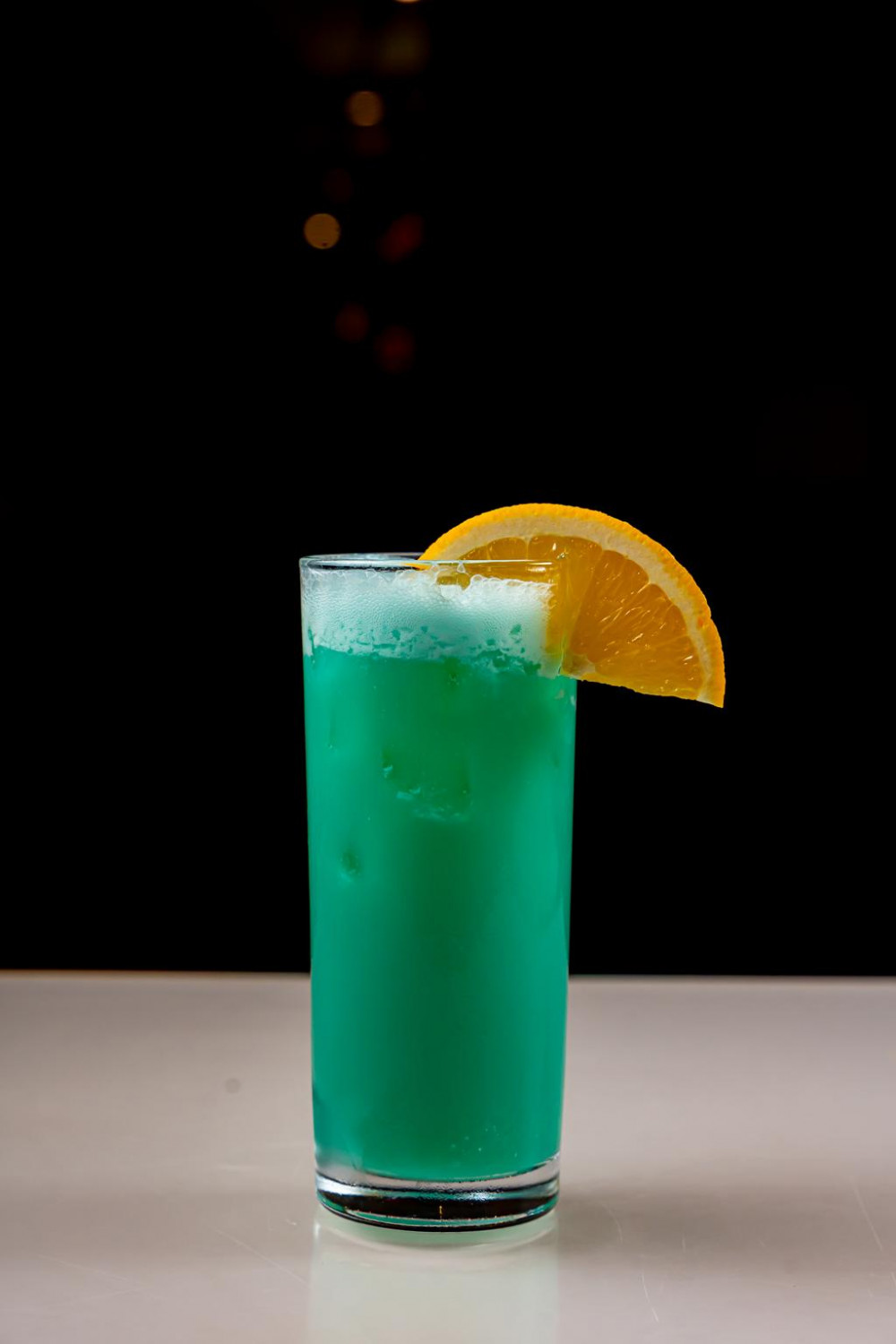 Malibu rum, blue Curacao, lemon juice, splash coconut cream, top with pineapple juice