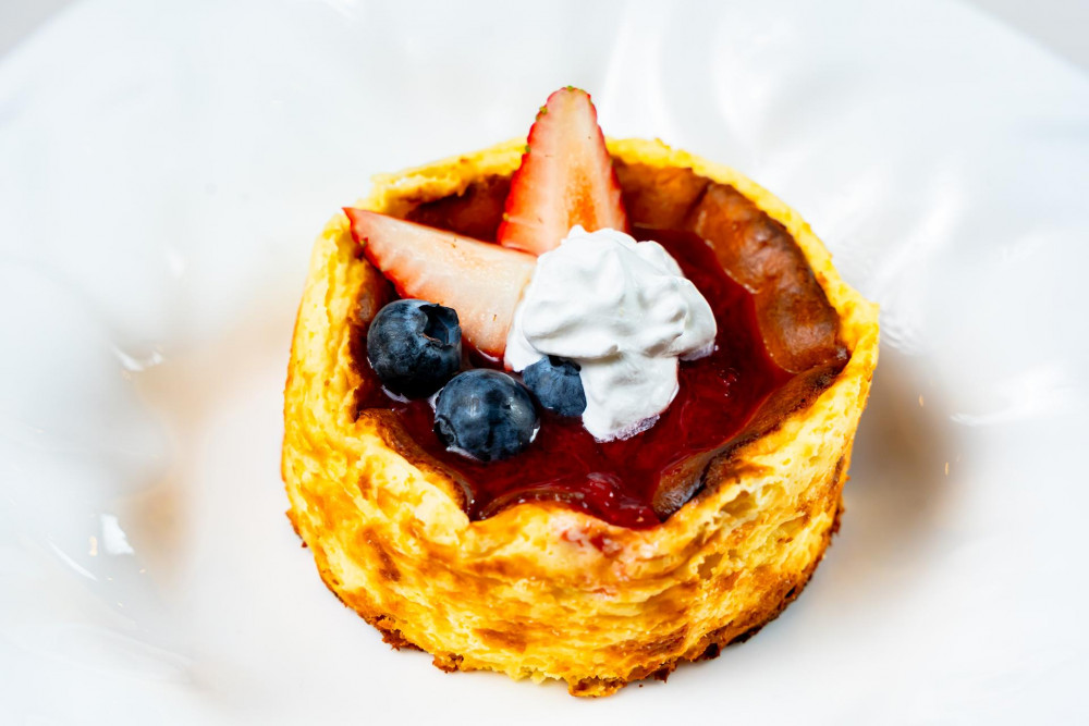 madagascar vanilla bean crème brulee, mix berries