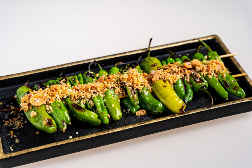 spicy: chili sauce. togarashi pepper with katsuo mirin & rice pearl