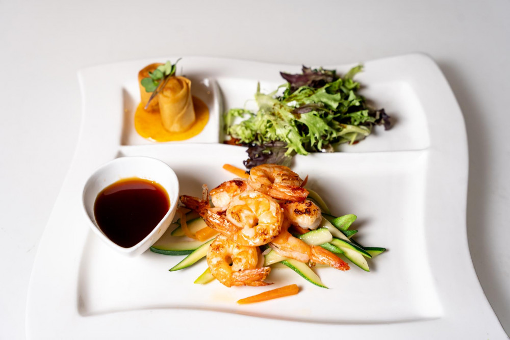 Spicy tuna, cream cheese, white tuna, avocado, jalapeno, kani, wrapped with rice paper, then lightly fried, topped with crispy beet, spicy aioli, eel sauce & Thai chili