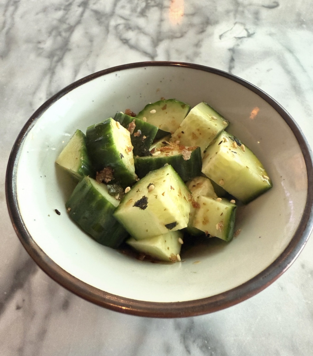 eel cucumber roll, top with avocado & tobiko, eel sauce