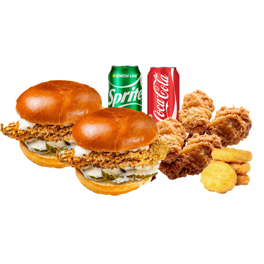 2 Chicken Sandwich + 4pcs Chicken Nuggets + 4pcs Wings + 2 Soda