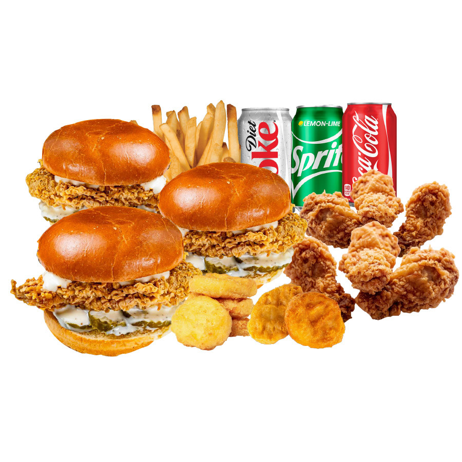 3 Chicken Sandwich + 6pcs Chicken Nuggets + 6pcs Wings + Fries + 3 Soda
