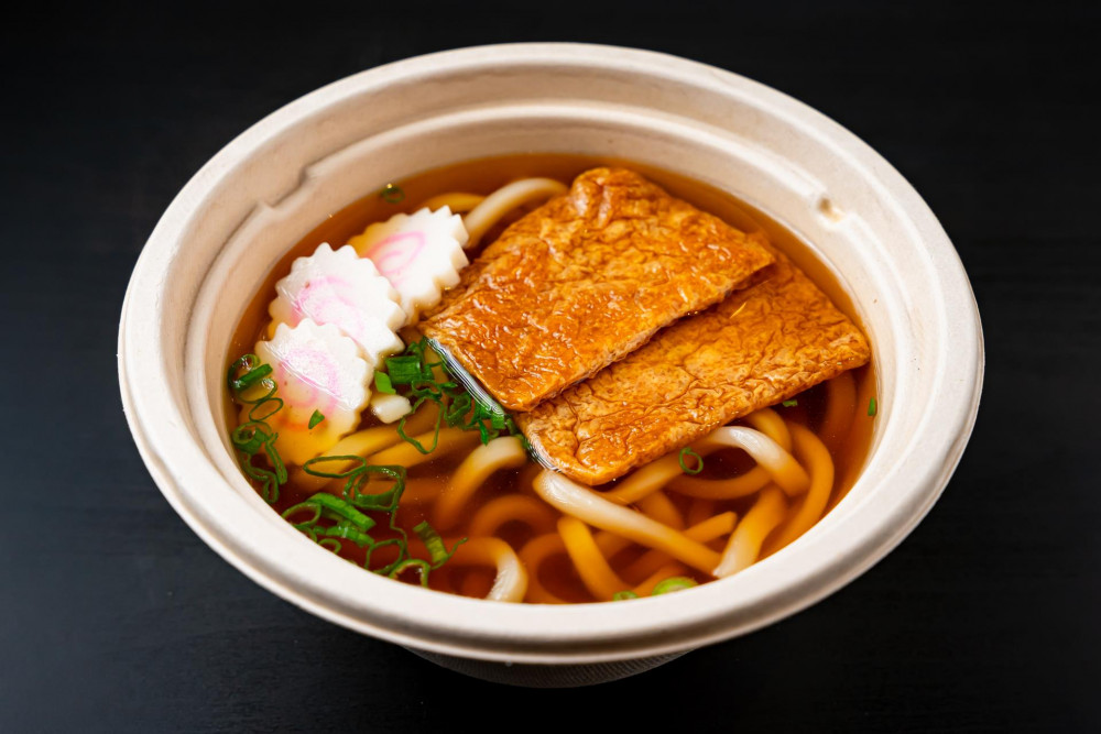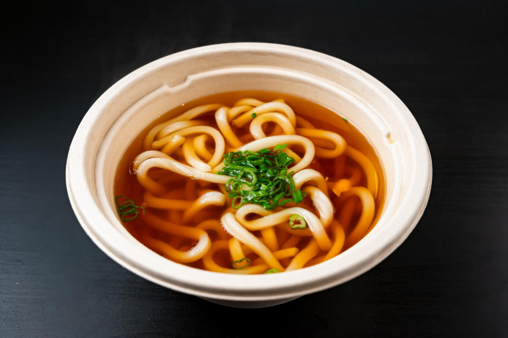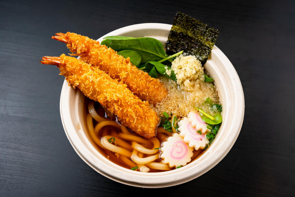 shrimp tempura, narutomaki fish cake scallion, tempura flakes