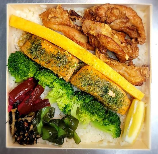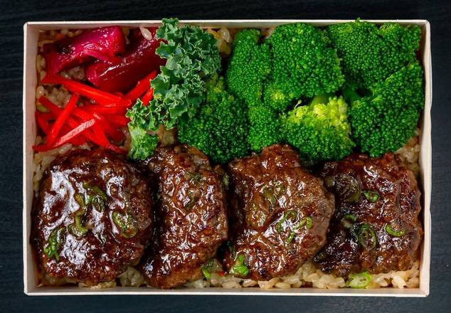 Galbi Short Rib (+$2) / Honey Soy Chicken Teriyaki / Shrimp Tempura / Beef Bulgogi / Sweet & Spicy Pork / Salmon Teriyaki