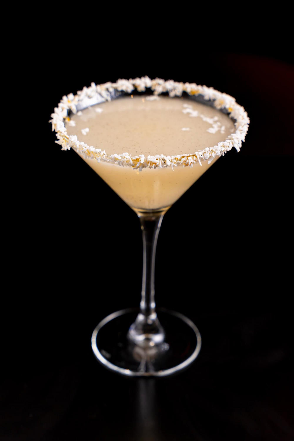 Coconut rum & Crème of Nigori Sake, coconut flakes