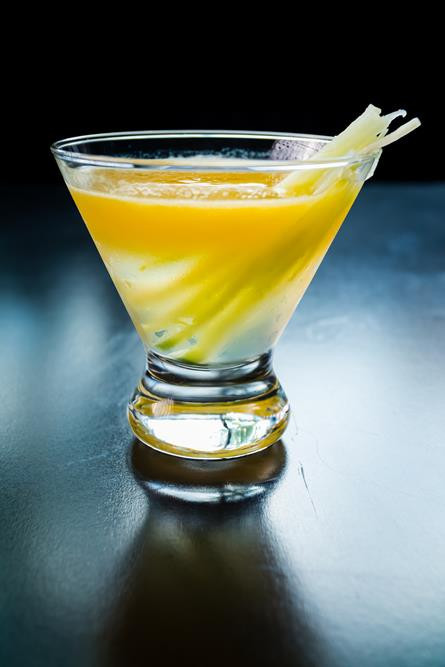 Plantation pineapple rum, unfiltered sake, pineapple juice, Chambord