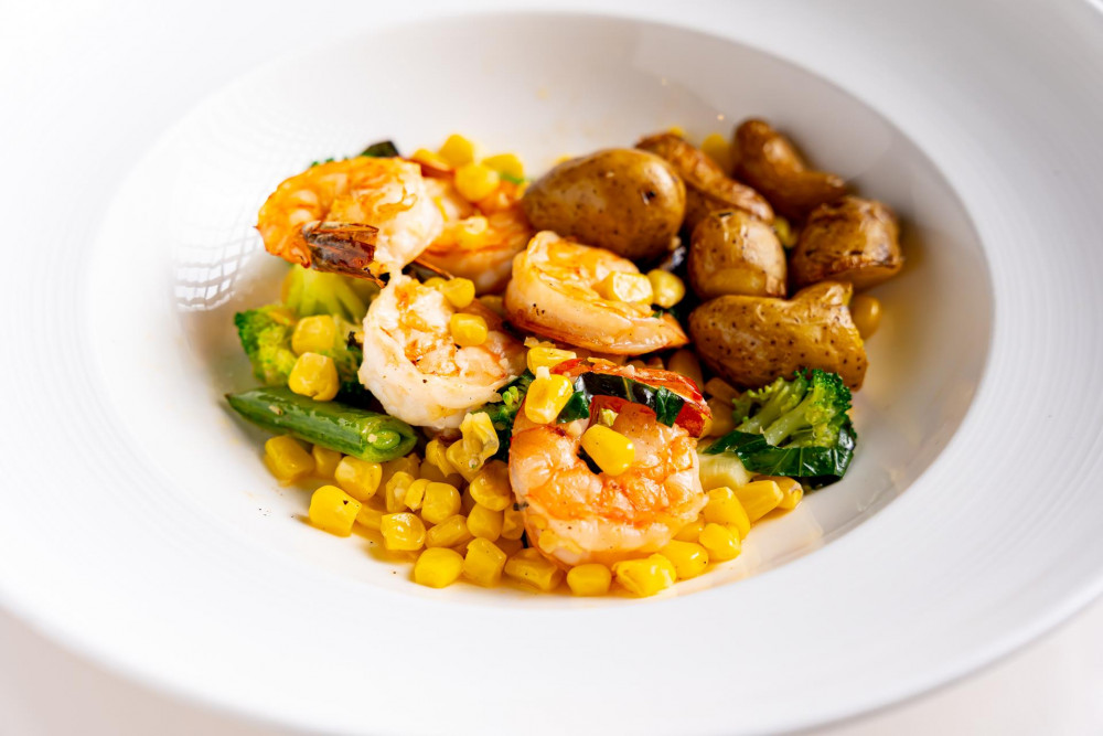 sautéed fingerling potato, sweet corn & sugar snap peas