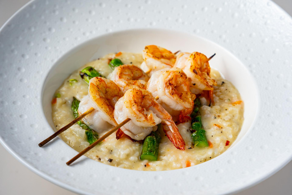 Grilled Shrimp Skewers & Lemon Truffle Risotto
