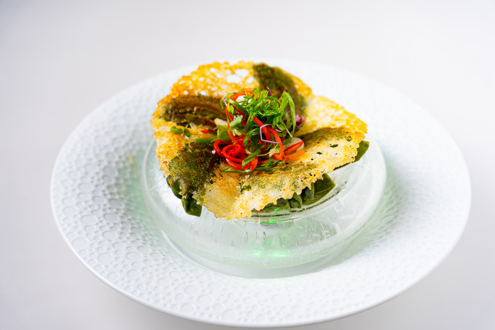 charred shishito, nori baked fingerling potato