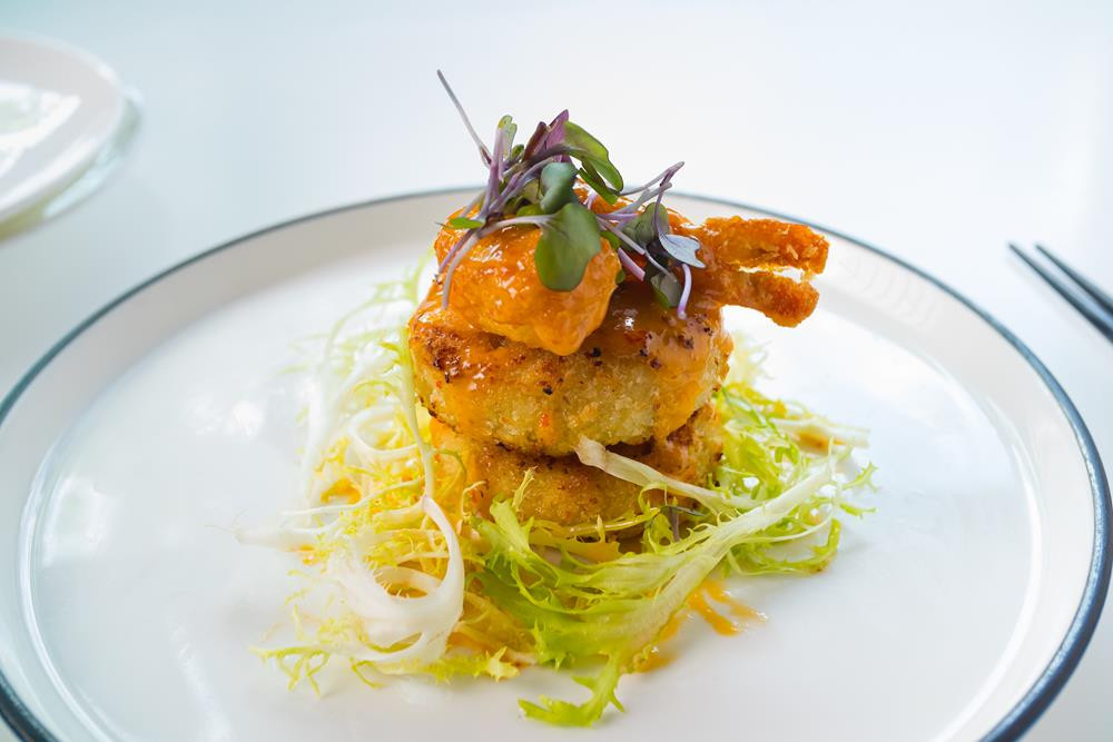 sweet aioli, served with a crispy shrimp
