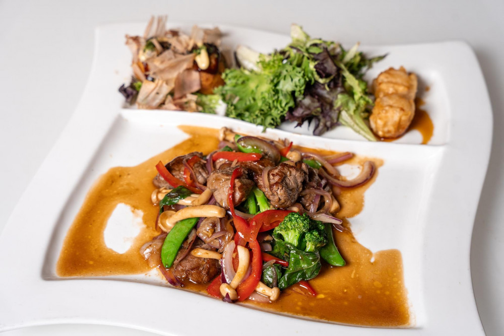 with mix vegetables & Thai basil leaves