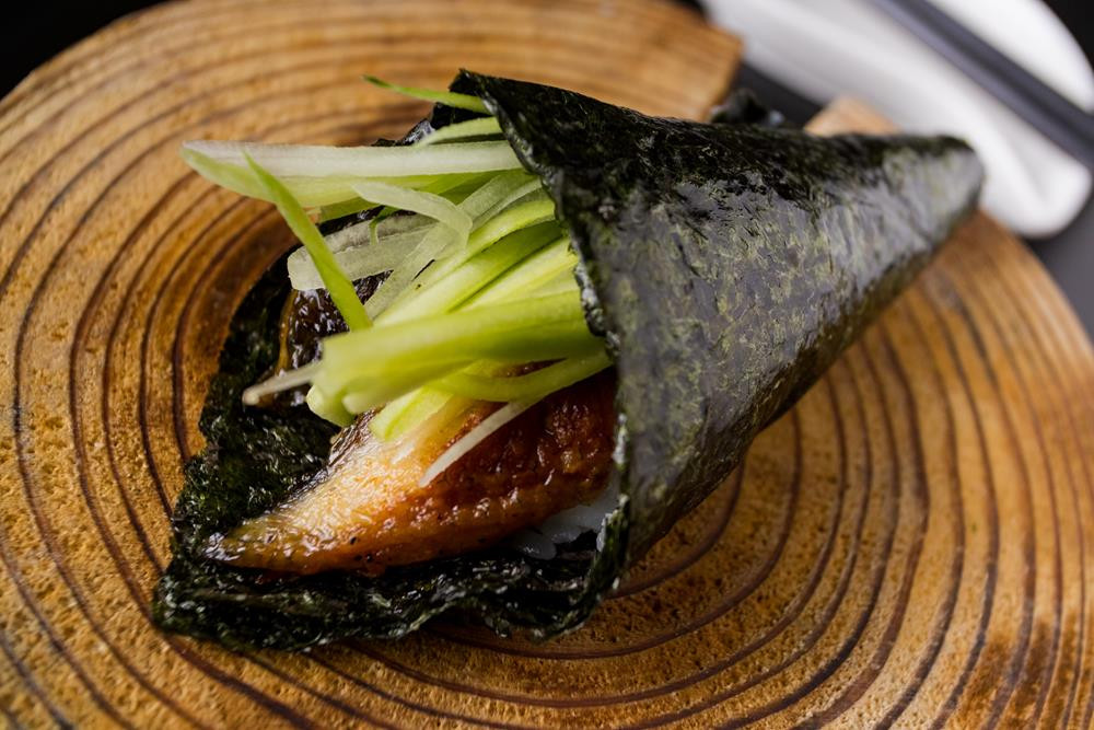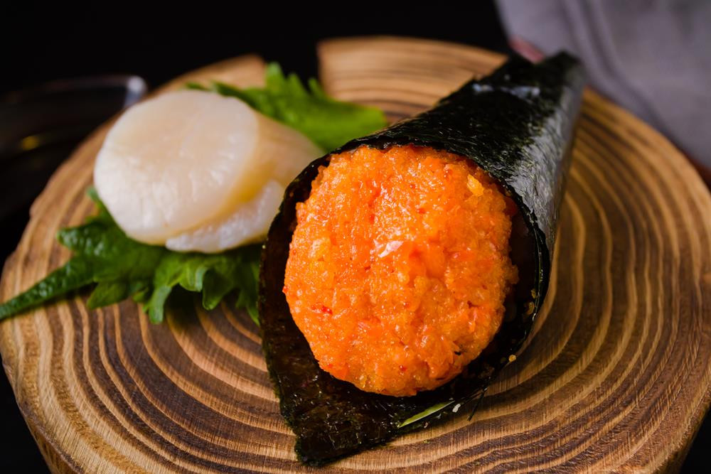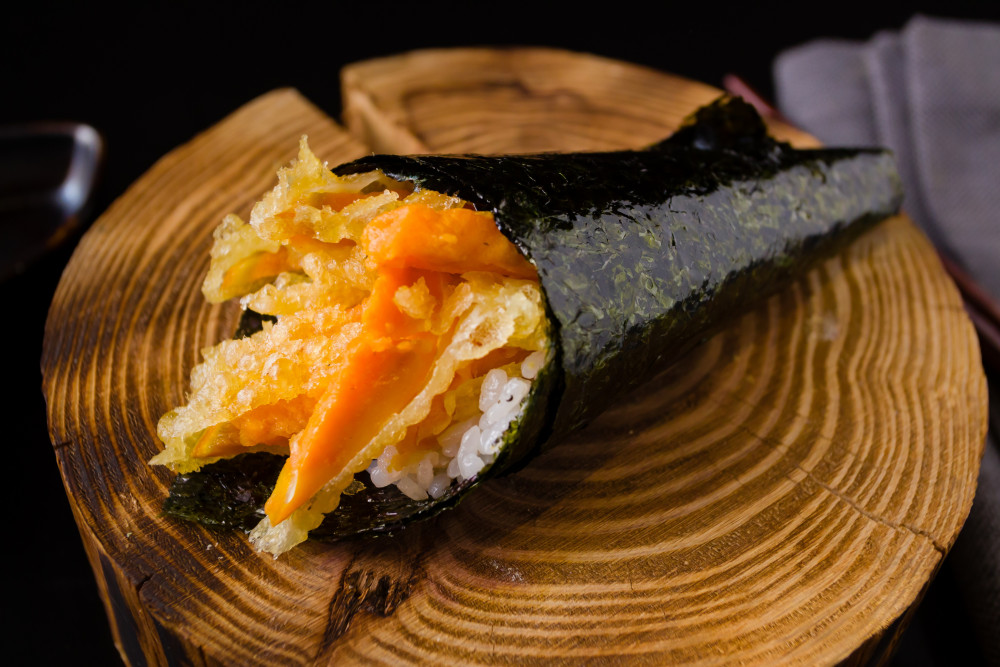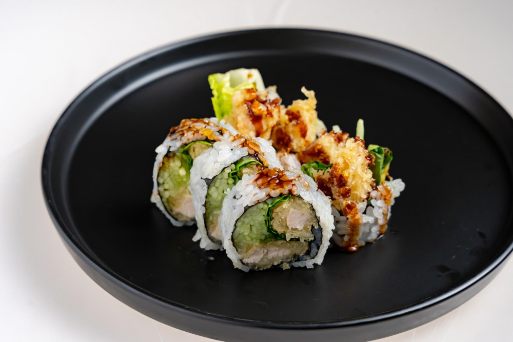 choice of healthy brown rice or sushi rice / spicy roll contains tempura flakes