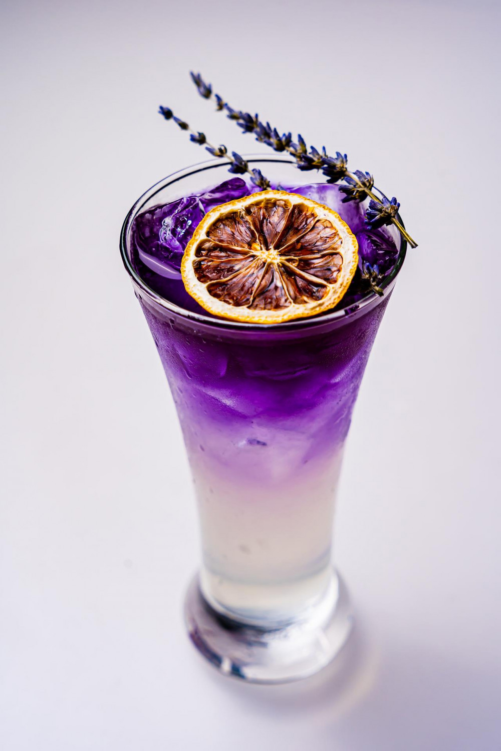 gin, lychee, schnapps, lychee juice, lemon juice, butterfly pea water
