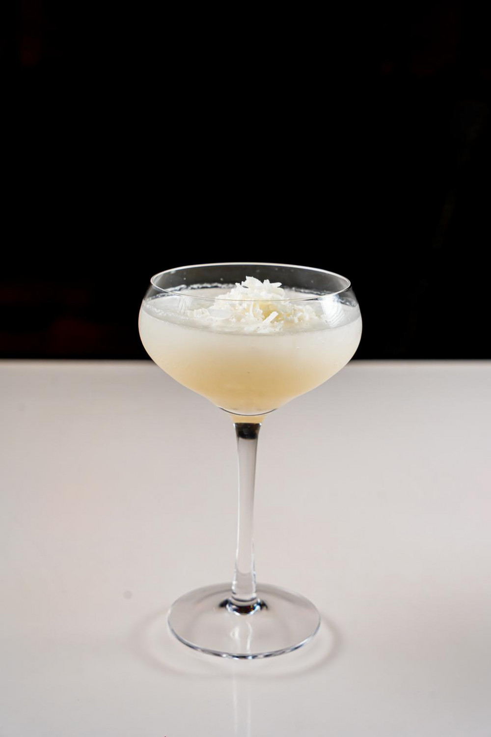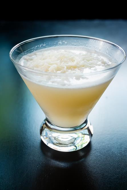 Coconut rum & Crème of Nigori Sake, coconut flakes