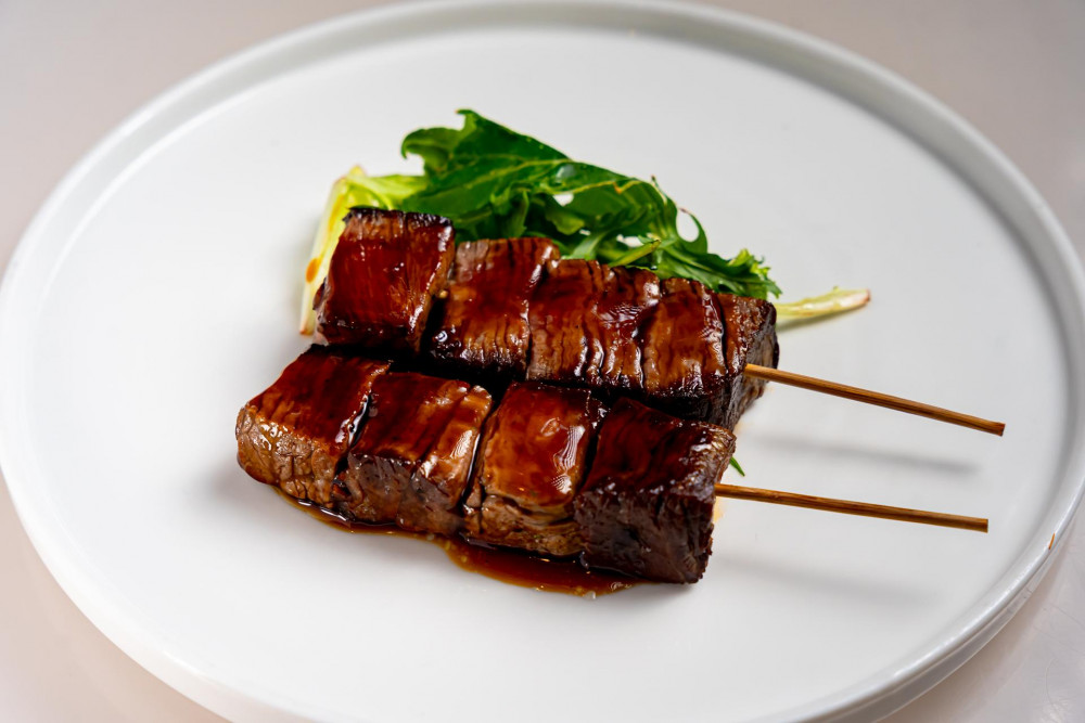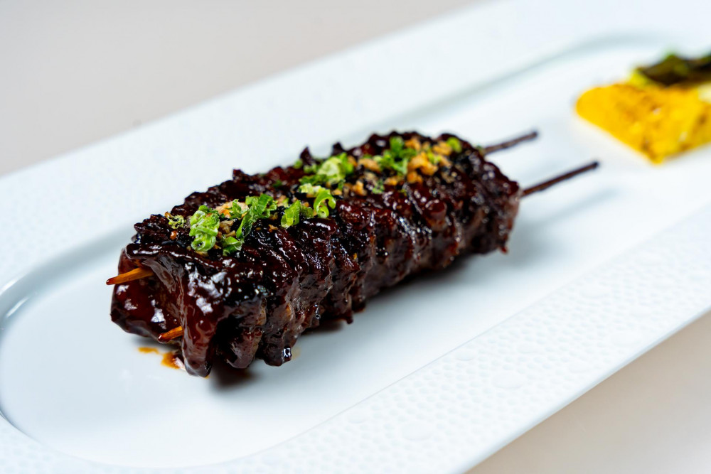 grilled wagyu steak with tare. guacamole, red onion, horseradish cream, lettuce, salted egg yolk