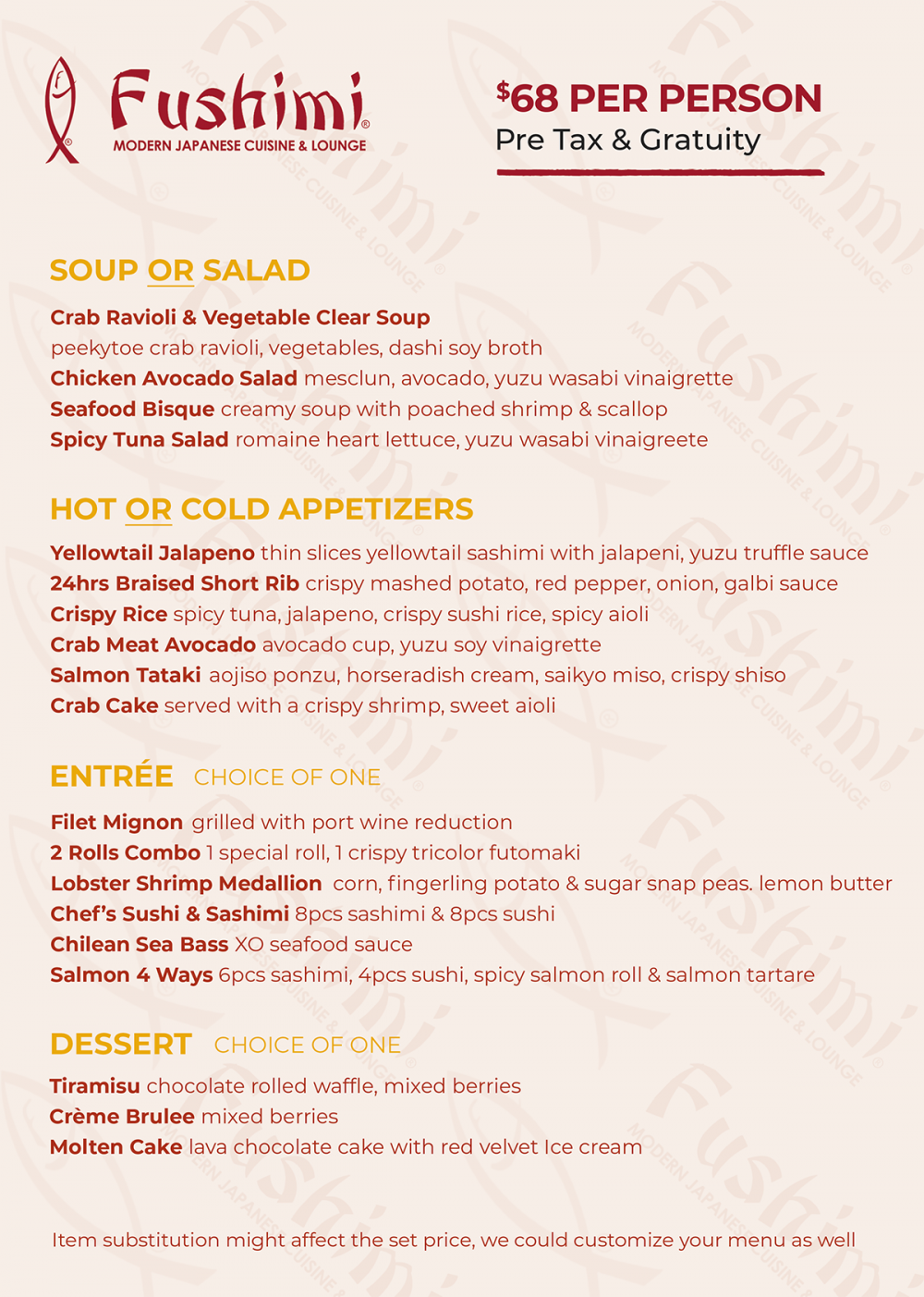 $68 PER PERSON