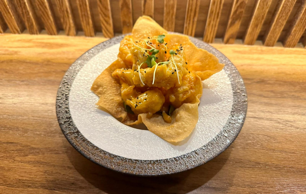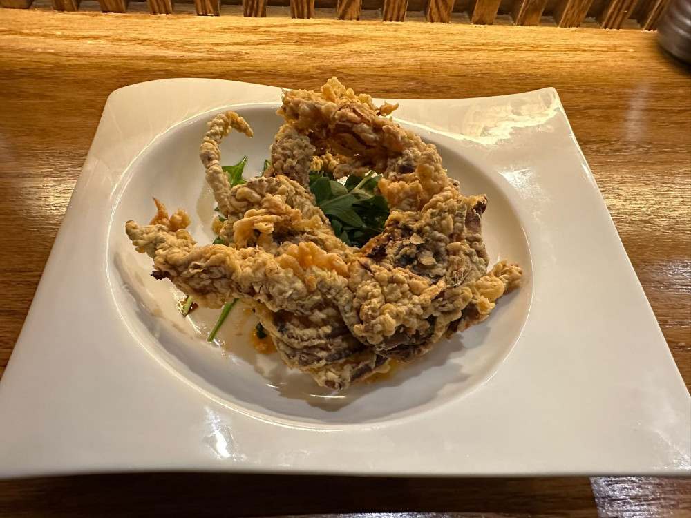 whole soft shell crab with mango salsa, our chef's homemade aioli