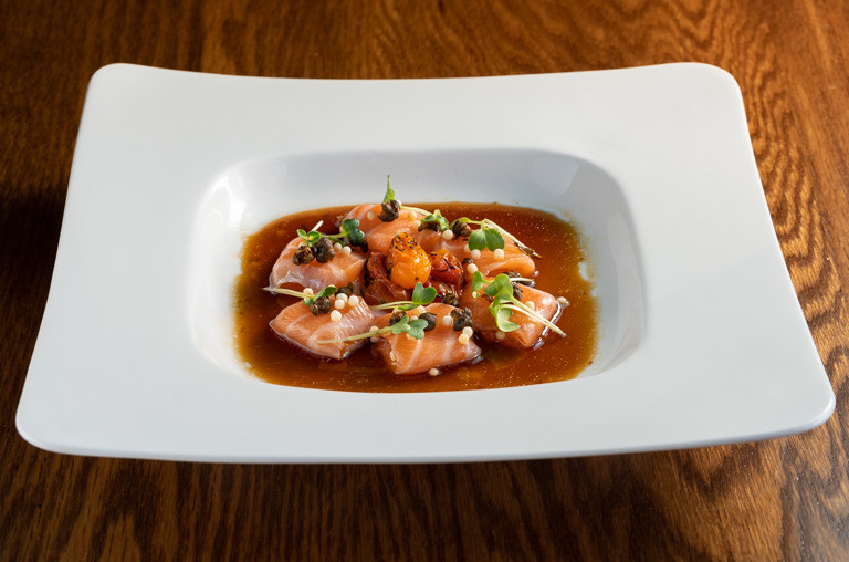 roasted tomatoes, crispy capers, yuzu soy vinaigrette