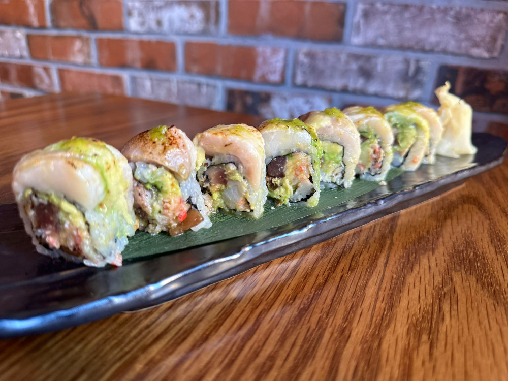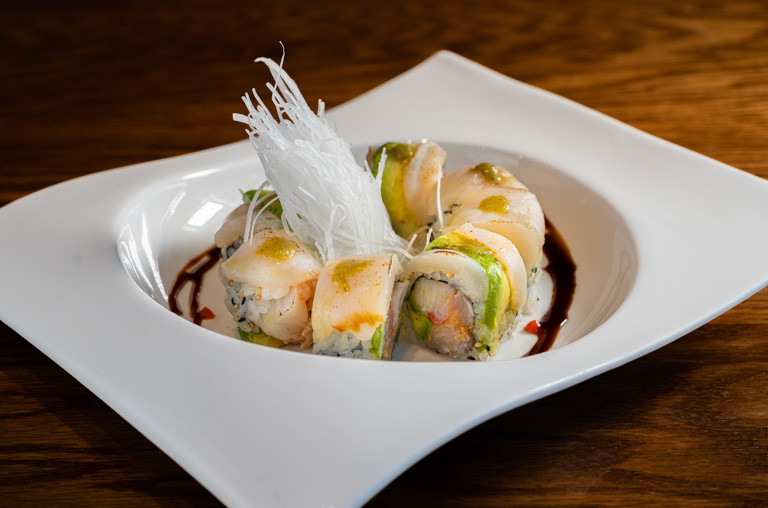 snowcrab avocado, peppered tuna, kampyo topped with seared codfish, avocado, jalapeno yuzu miso sauce