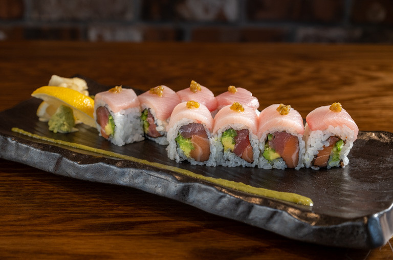 salmon, tuna, avocado, jalapeño topped with yellowtail, yuzu kosho, lime cilantro sauce