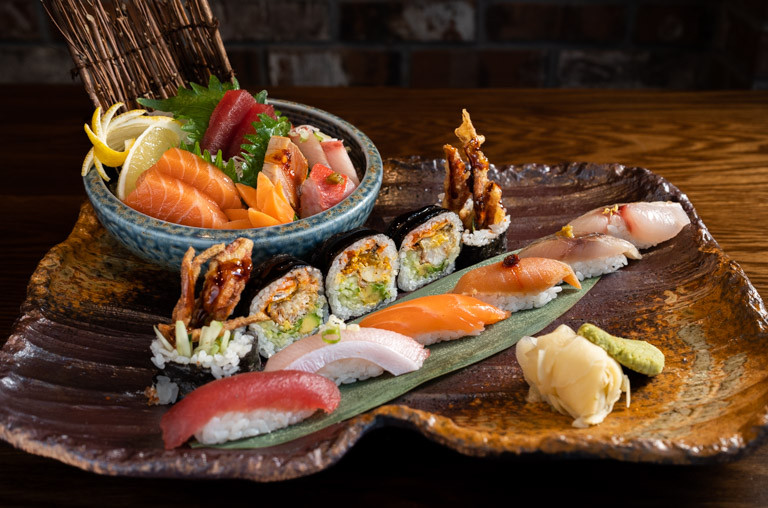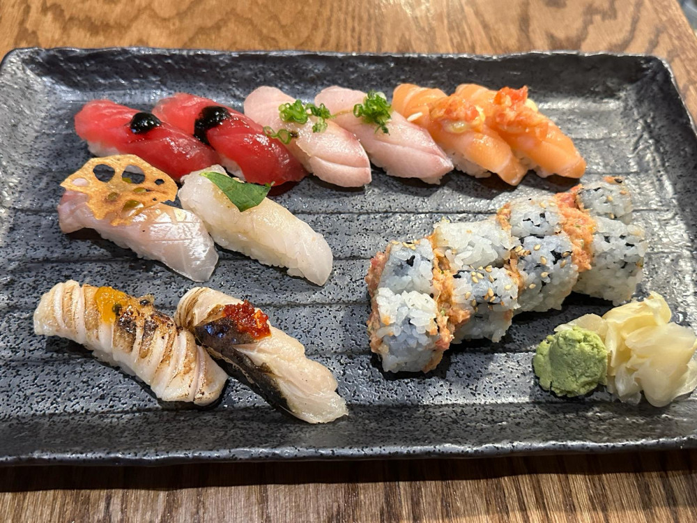 6 pcs sushi, 8 slices Sashimi, 1 contempo roll