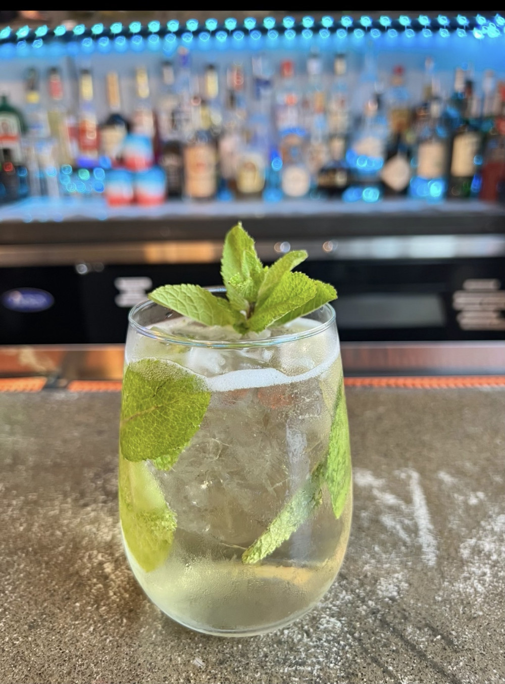 Prosecco, St. Germaine, Mint, Leaves, Seltzer