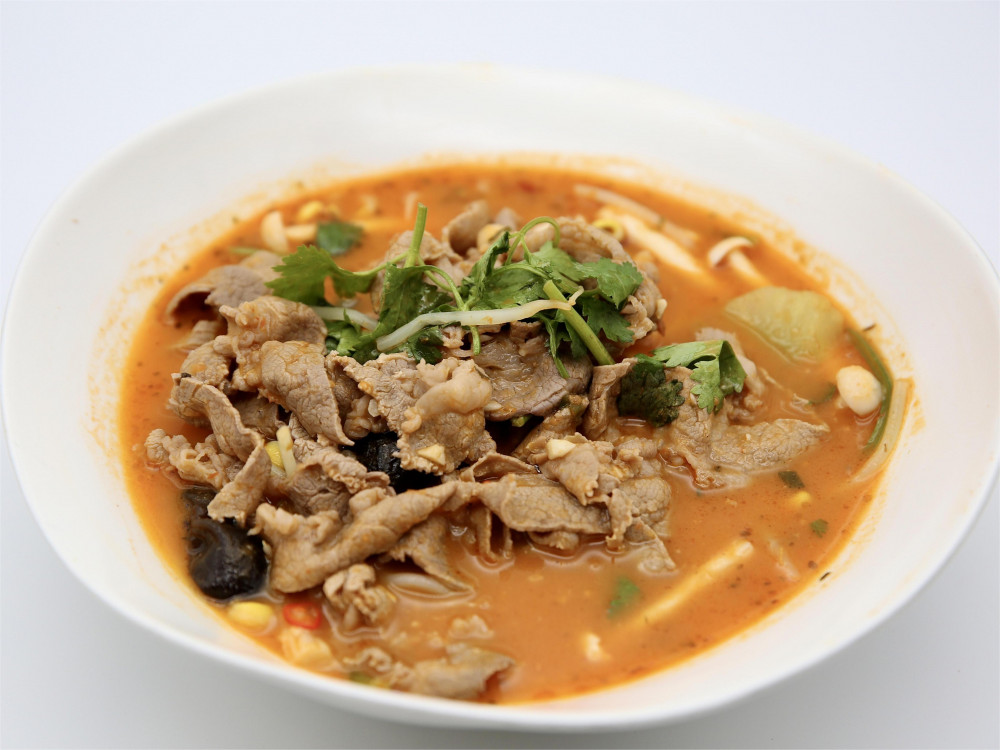 sliced beef belly, seasonal vegetables, tomato braised in spicy and sour broth