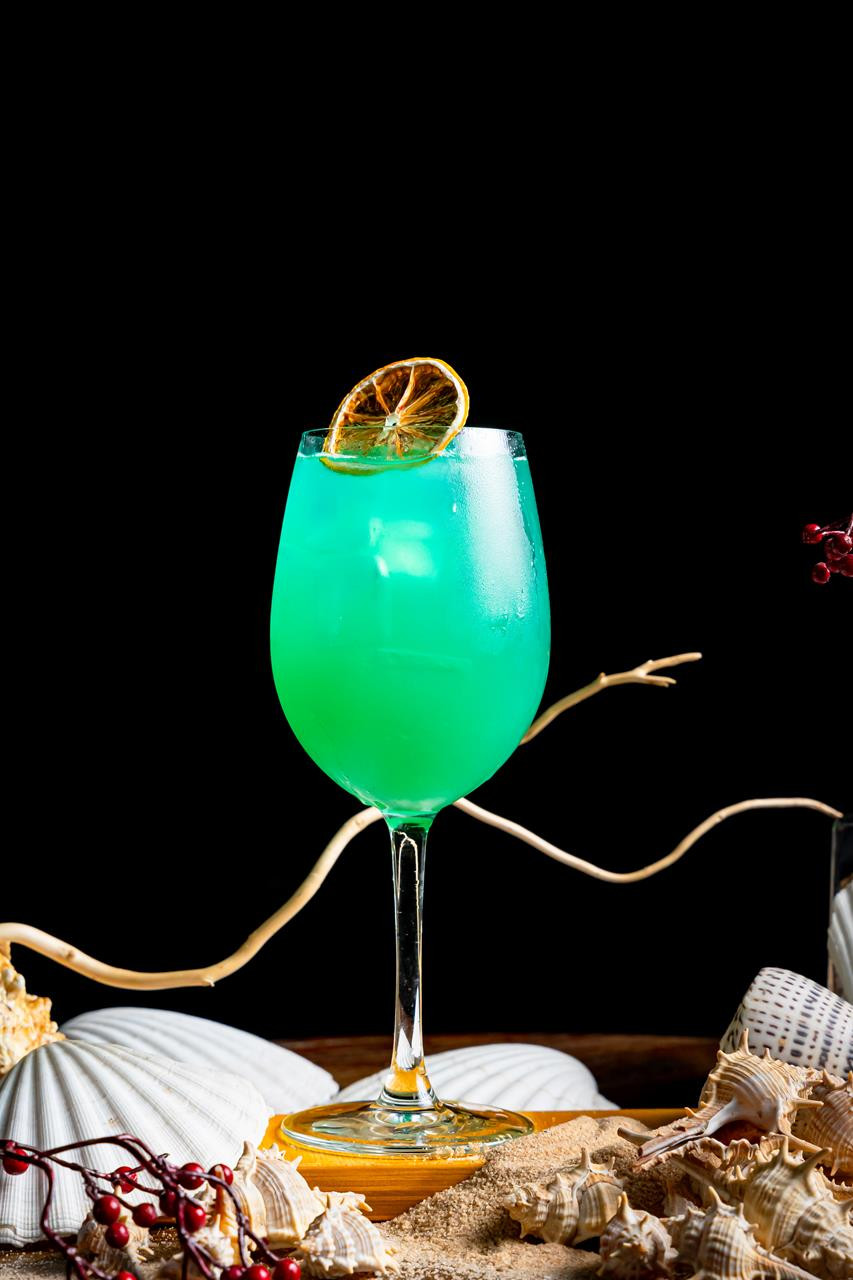 Vodka, Blue Curacao, White Wine, Pineapple Syrup, Ginger Soda