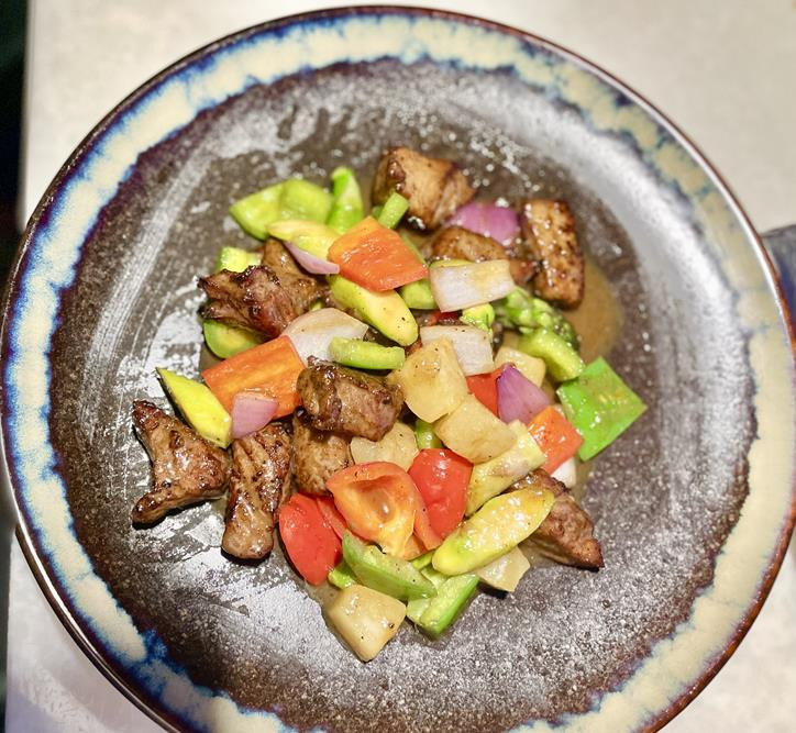 Rib eye steak, asparagus, green & red pepper, onion and fresh pineapple cook in chef special steak sauce