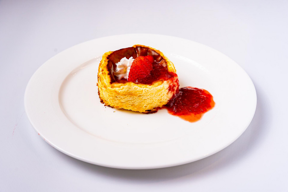 Finished with whipped cream and fresh fruit for a perfectly balanced, classic French
