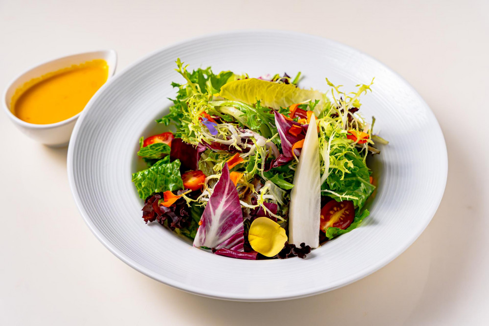 Mesclun, romaine heart, frisée, endive, cherry tomatoes, radicchio, pineapple ginger dressing or sesame dressing - Add avocado +$4 - Add grilled chicken +$6