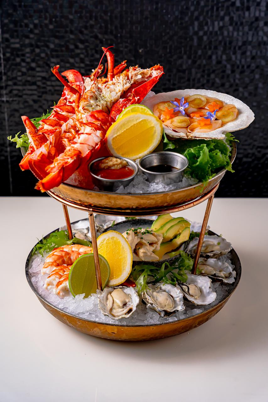 9pcs Oysters, 4pcs Jumbo Shrimp, Whole Lobster, Scallop Carpaccio, Jumbo Lump Crab