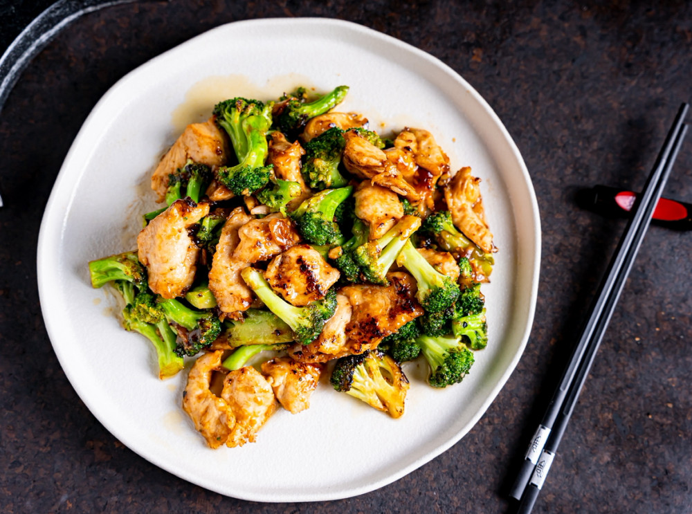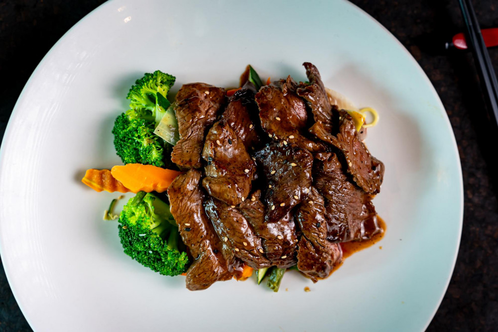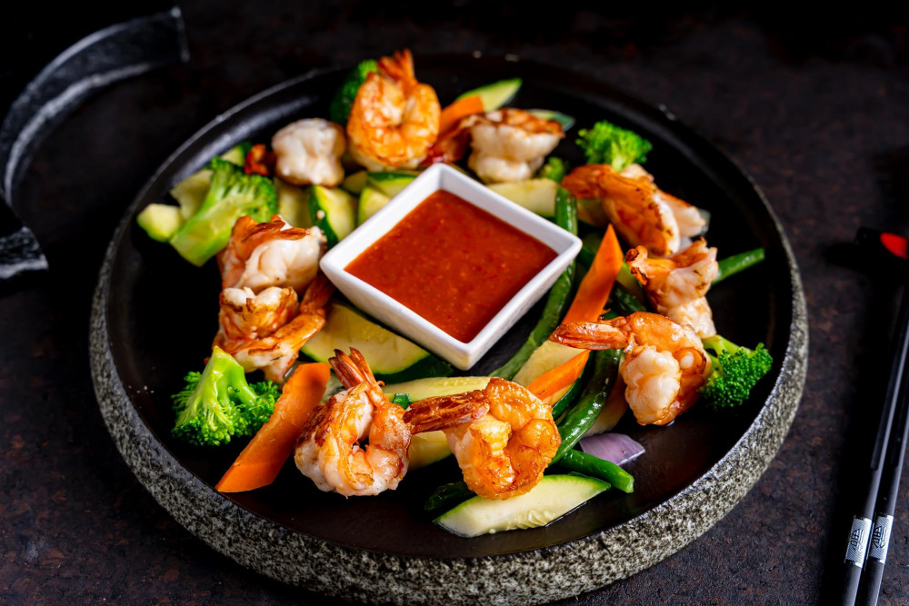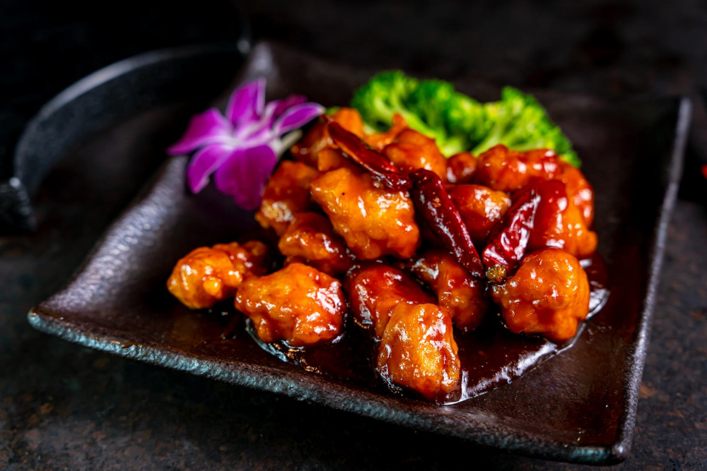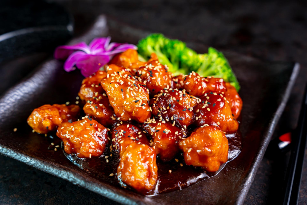 Thai style with onion red pepper basil leaves in spicy sweet sauce