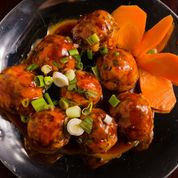 Vegetable Balls in a Ginger Soy Gravy.