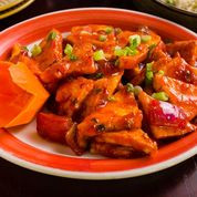 Chicken Tossed with Green Chilies and Soy Sauce.