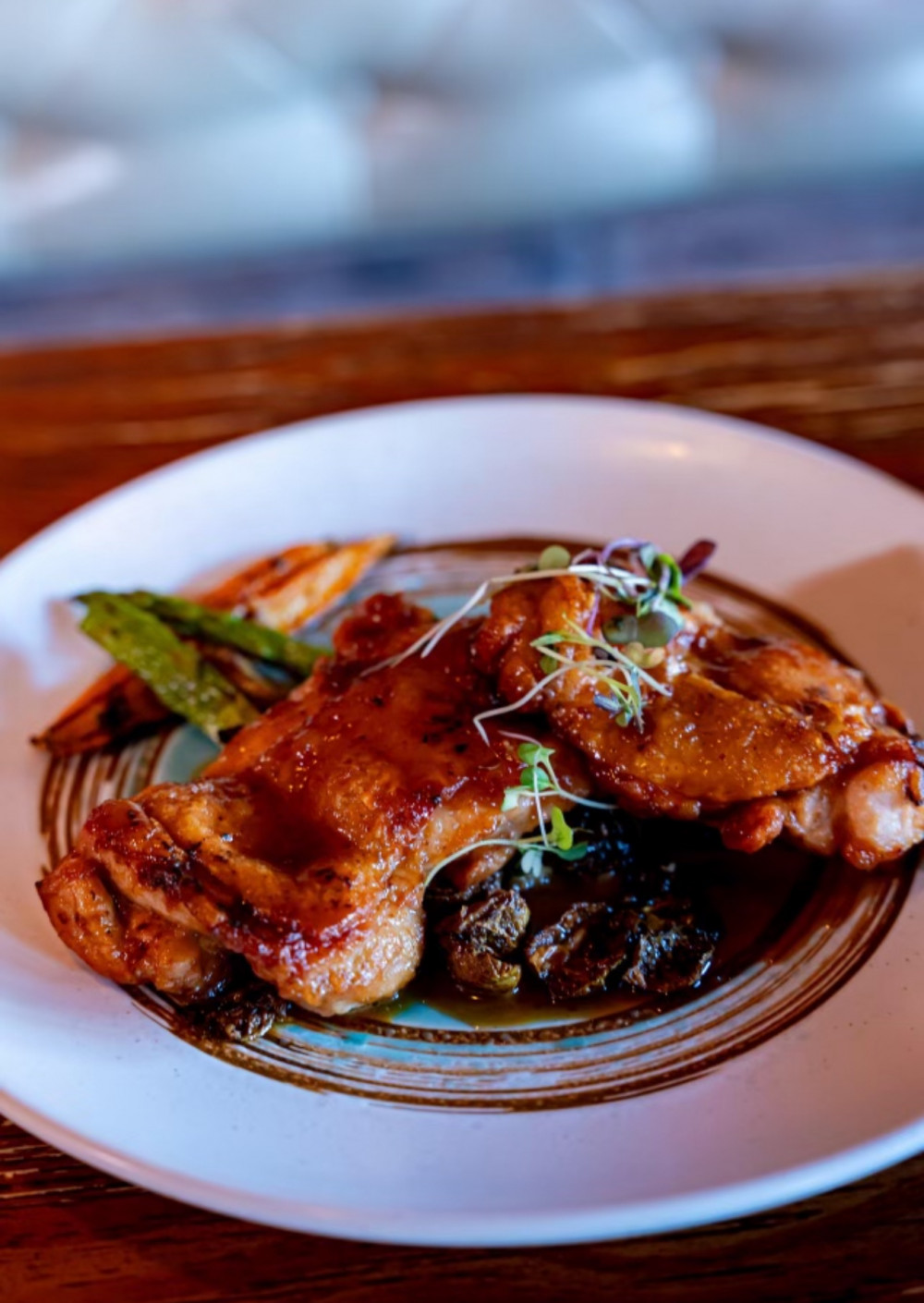 Crispy skin dark meat, Brussels sprouts