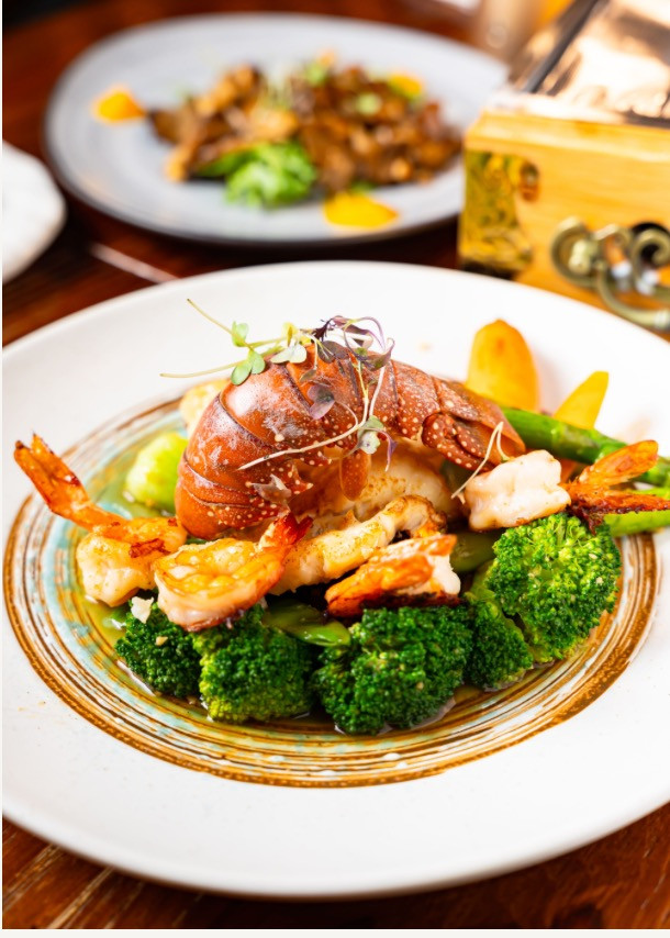 Lobster tail, scallops, shrimp, lemon safron mayo