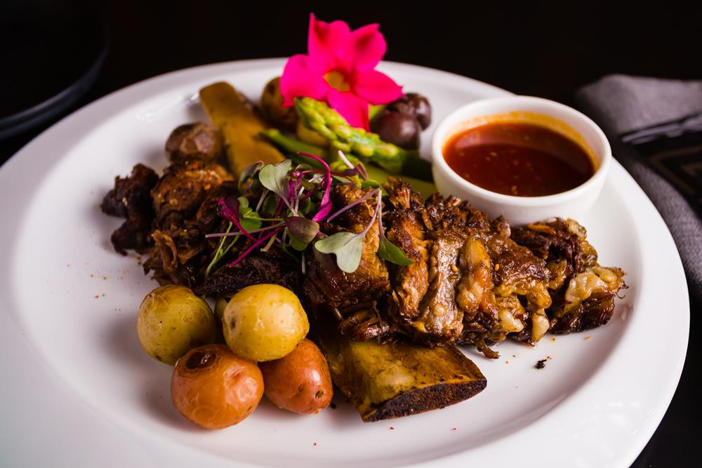 Slow cooked bone-in short rib, seasonal vegetable, top with shichimi, house BBQ sauce