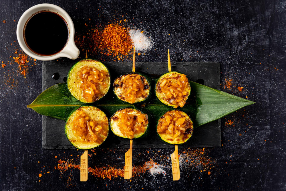 Rib Eye, Chicken Breast, Red Snapper, Broccoli, Zucchini